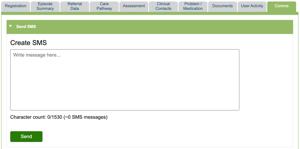 Once an SMS has been generated, it can be viewed within iaptus in the Comms tab under the SMS History section within a particular patient record.