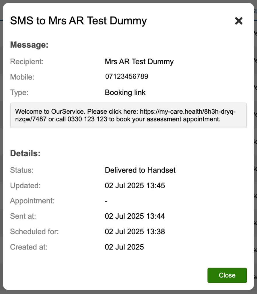 Further information regarding the SMS for Online Self Referral Confirmation are detailed in the guide for this feature.