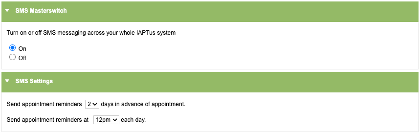 Superusers can also change how far in advance of an appointment reminders are sent, and set the time that the system should begin queuing and sending any reminder SMS each day.