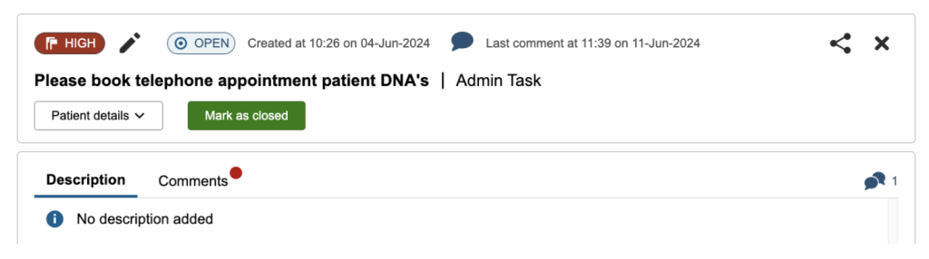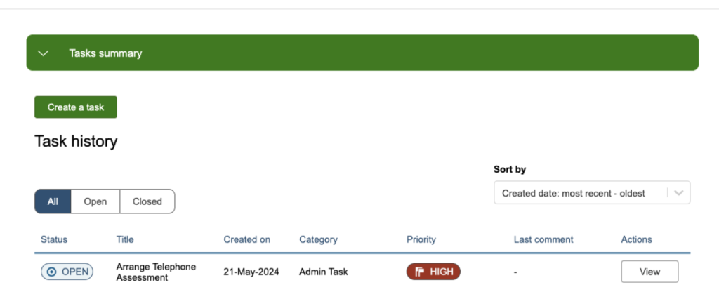 Please note: The option to close a task is automatically switched on for all users, however, if you want just certain users to be able to close tasks, please raise a support log and your account manager can change the permissions.