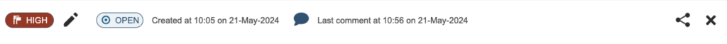 - Its current status, Open or Closed, along with the Created date/time and Last comment date/time