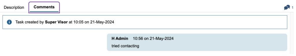 Tasks can be updated with comments, which triggers a notification to update all involved with the tasks progress.