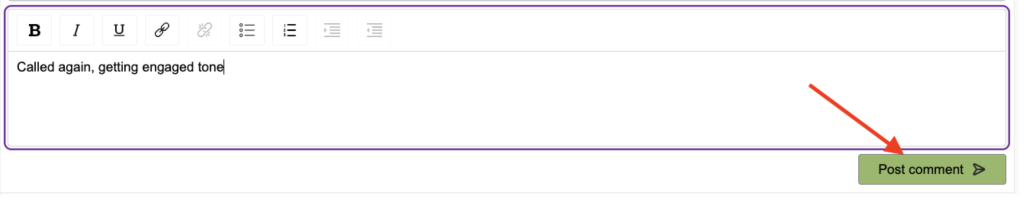 There is a text box at the bottom that allows you to post a new comment. It comes with a basic formatting toolbar that also allows you to include a link.