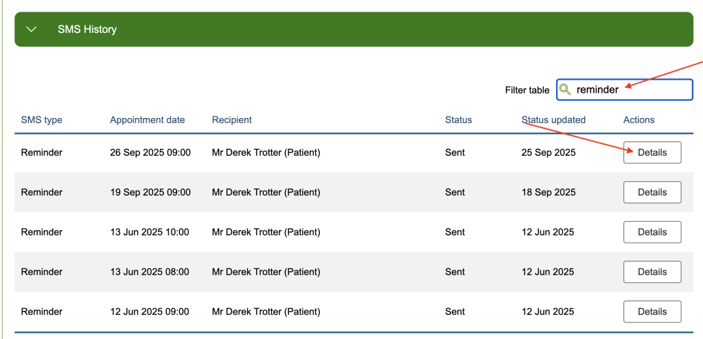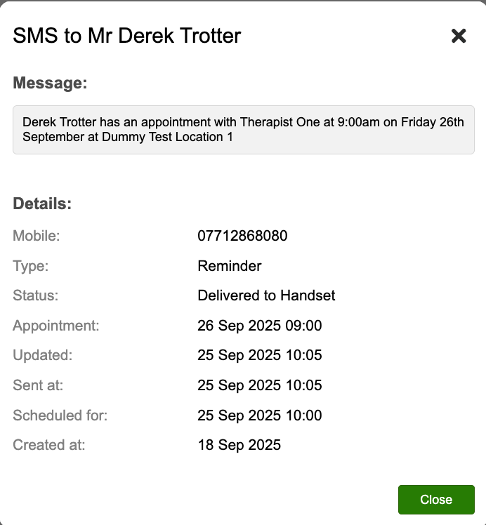 Any SMS messages that are scheduled to send at a later date will sit at pending until their scheduled send date/ time. For example, appointment reminders are generated when the appointment is booked but will remain at a status of ‘pending’ until X days prior to the appointment.