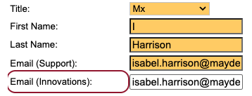 Your email address will also need to be completed in the ‘Email (Innovations)’ field in your account details.