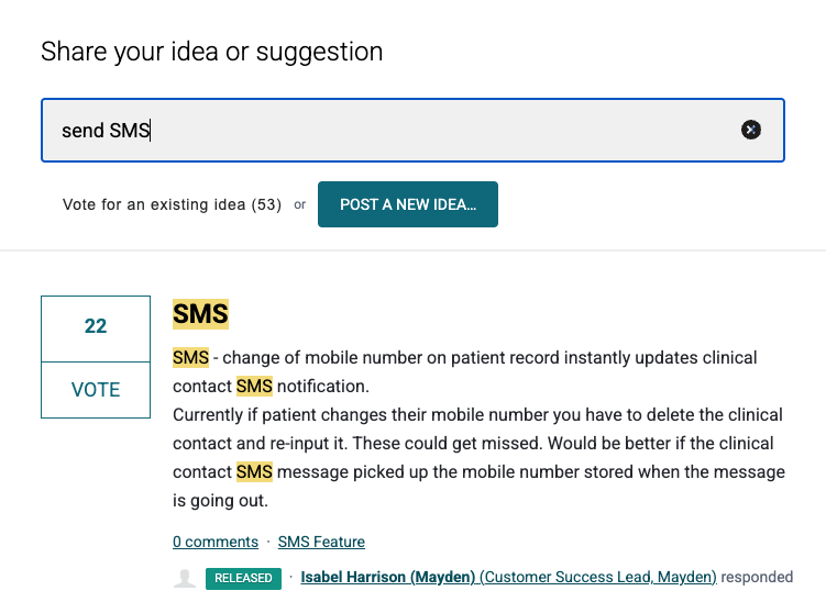 At the top, you can read about how we use Innovations at Mayden. If you scroll down, you will see an area where you can share you idea or suggestion or you can have a look at ones that have already been raised.