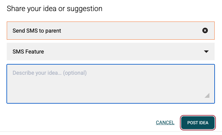 Select a category from the drop down, enter a description of your idea and click on post idea.