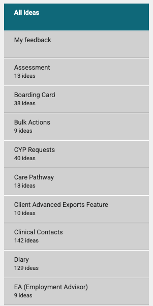 You can also filter the ideas by the category and area of iaptus, on the right hand side. You can also find all of your ideas in ‘My Feedback’.