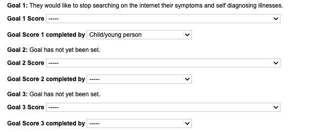 If you are working on a Children and Young Persons (CYP) instance of iaptus, within the Clinical Contacts tab you will have an additional field to record who completed the goal and the abilty to give a completion score against the goal.