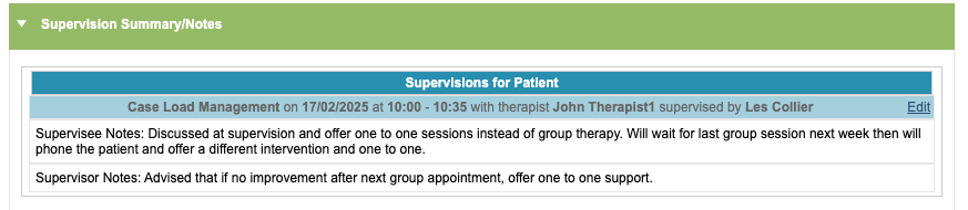 Clicking ‘Edit’ here will allow you to update the notes for the Supervision session.